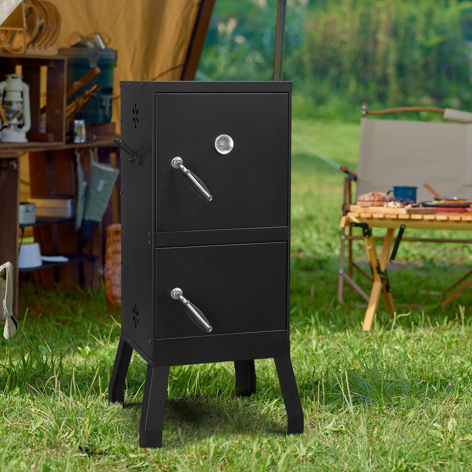 Enjoy authentic smoky flavor at home with this outdoor vertical charcoal smoker, perfect for backyard barbecues, camping trips, and outdoor cookouts. Its compact design offers big performance without taking up much space.