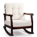 Crafted from 100% solid wood, this chair offers unmatched durability and a smooth, stable rocking motion that promotes relaxation after a long day.Featuring wide, curved armrests and thick, plush cushions, this chair is built for ergonomic comfort, providing excellent support for hours of lounging.