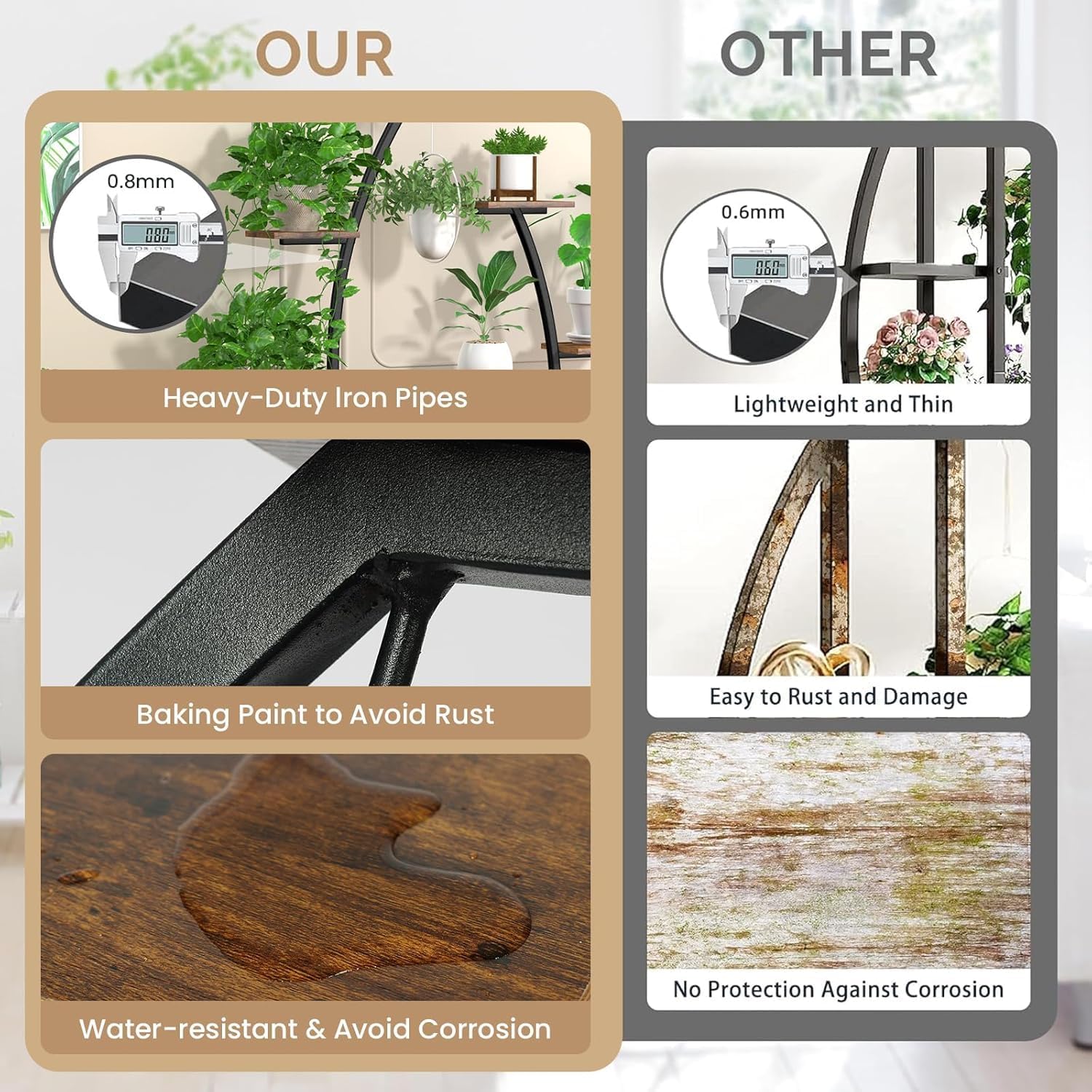 Built with industrial-strength 0.85mm iron pipes and waterproof shelves, this stand reliably holds heavy plant collections without wobbling, looking beautiful in living rooms or sunrooms for years.