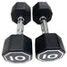 This 10 lbs pair of octagonal dumbbells features large, easy-to-read numbers for quick weight selection and a design that prevents rolling, making storage simple and safe.