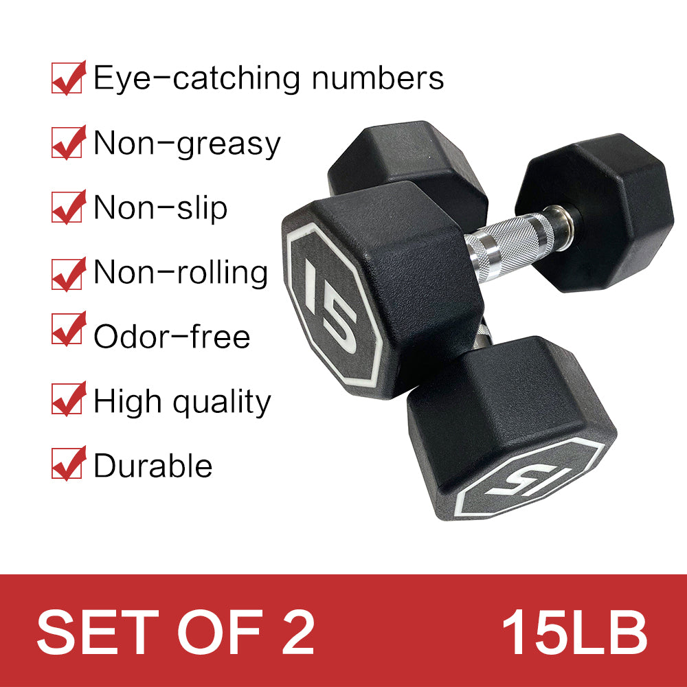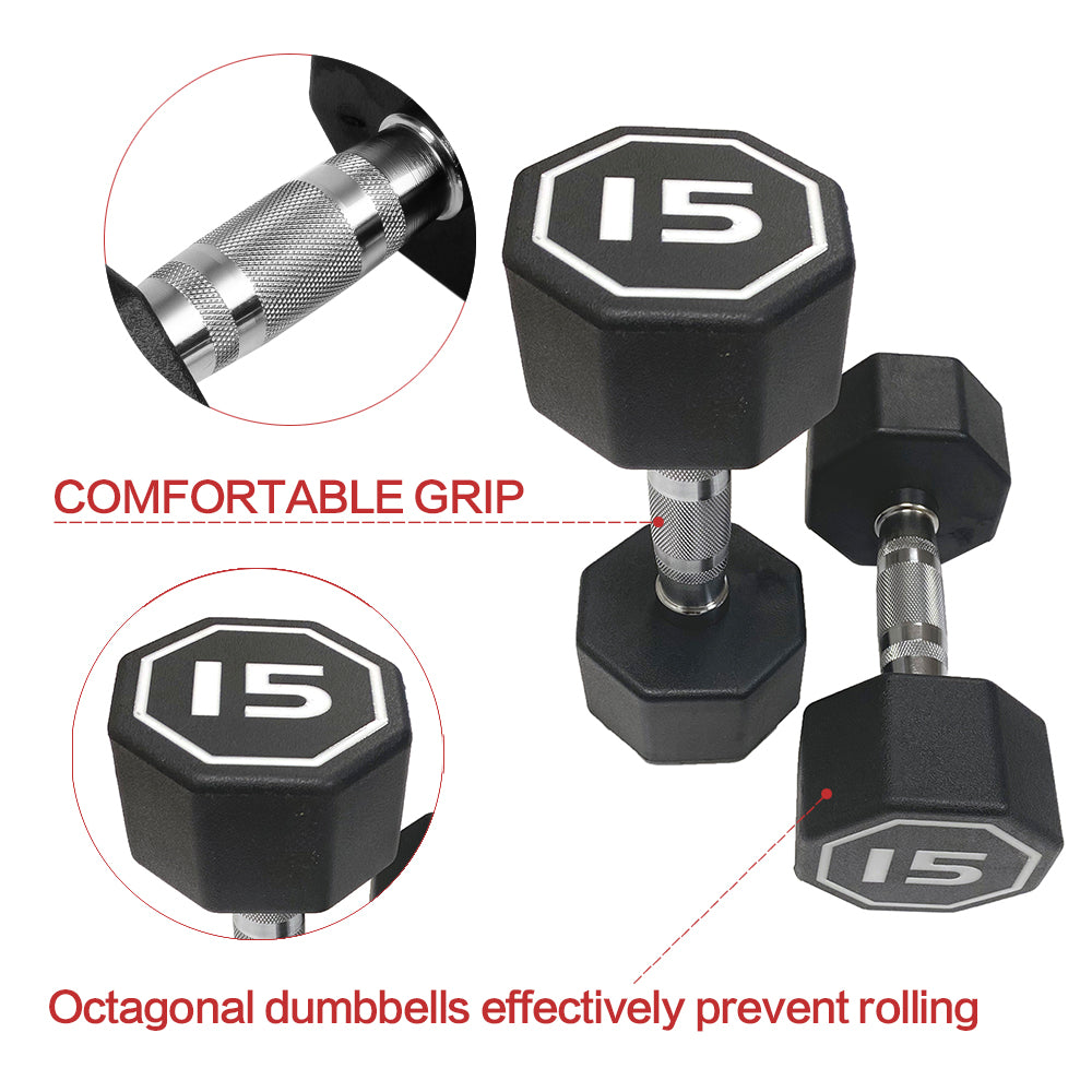 This 15 lbs set of 2 octagonal dumbbell is designed for both home and gym workouts, offering durability, safety, and style.