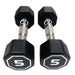 Includes two 5 lbs octagonal dumbbells with large easy-to-read markings. The octagonal design prevents rolling and allows efficient storage.