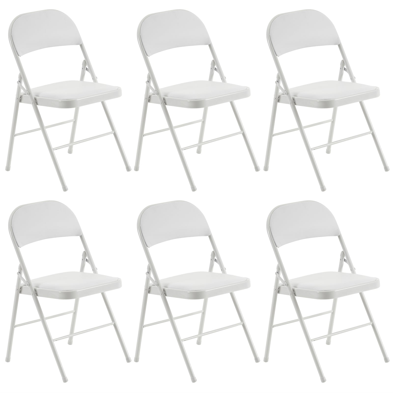 The HAOYYE 6-piece foldable chair set is a perfect seating solution for both casual and professional use. Each chair is constructed with a solid iron frame and sponge-filled PVC seat and backrest to provide lasting comfort and stability. Their foldable design allows for compact storage and easy transport, while the non-slip leg sleeves ensure your floors remain unscathed. With a clean white look, these chairs are a great match for events, meetings, reception areas, or everyday use at home. When not in use, simply fold and stack them away—convenience meets elegance in every seat.