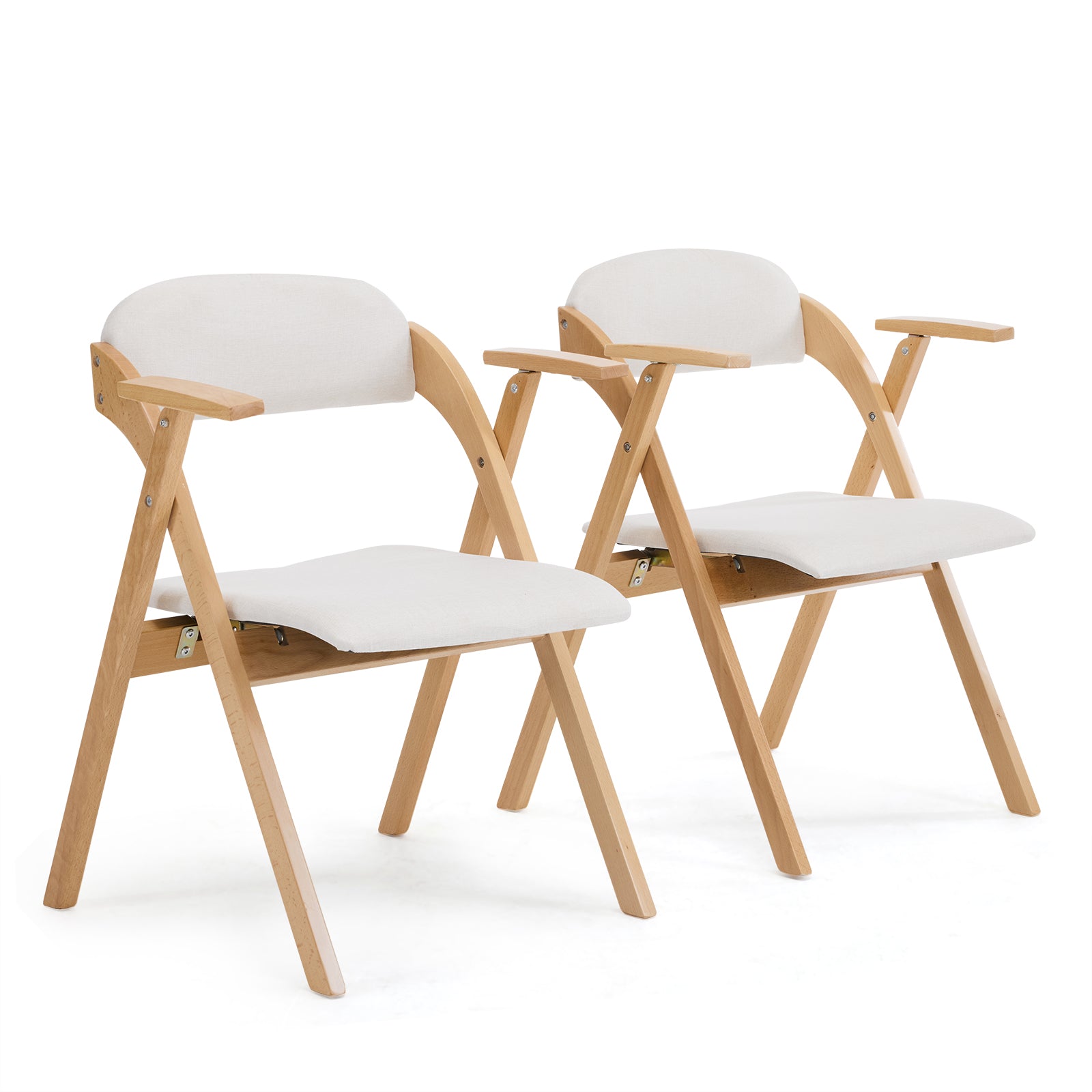 HAOYYE’s set of 2 beige-cushioned wooden folding chairs brings together comfort, style, and convenience in one compact package. Featuring a solid beechwood frame and padded PU leather seats, these chairs can support up to 400 lbs each. Whether you're hosting a dinner, setting up extra seating for guests, or heading out for a picnic, these chairs fold easily for portability and quick storage. With a classic natural wood finish and soft beige cushions, they match effortlessly with any décor. No assembly is required—just unfold and relax.