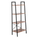This four-tier steel and wood bookshelf offers ample space to store books, magazines, photo frames, and decor in one compact design.