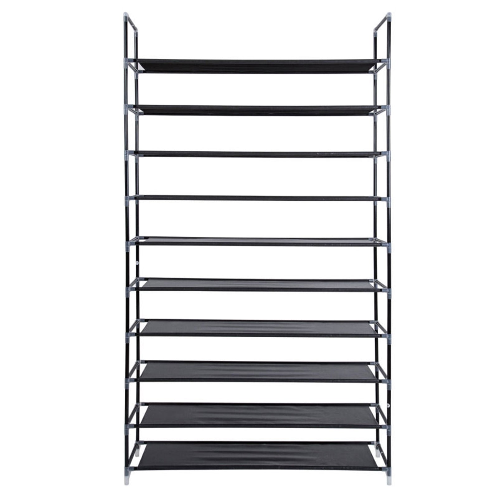 This 10-tier shoe rack is built with superior materials, ensuring long-lasting use and a sturdy structure that keeps your footwear neatly stored.