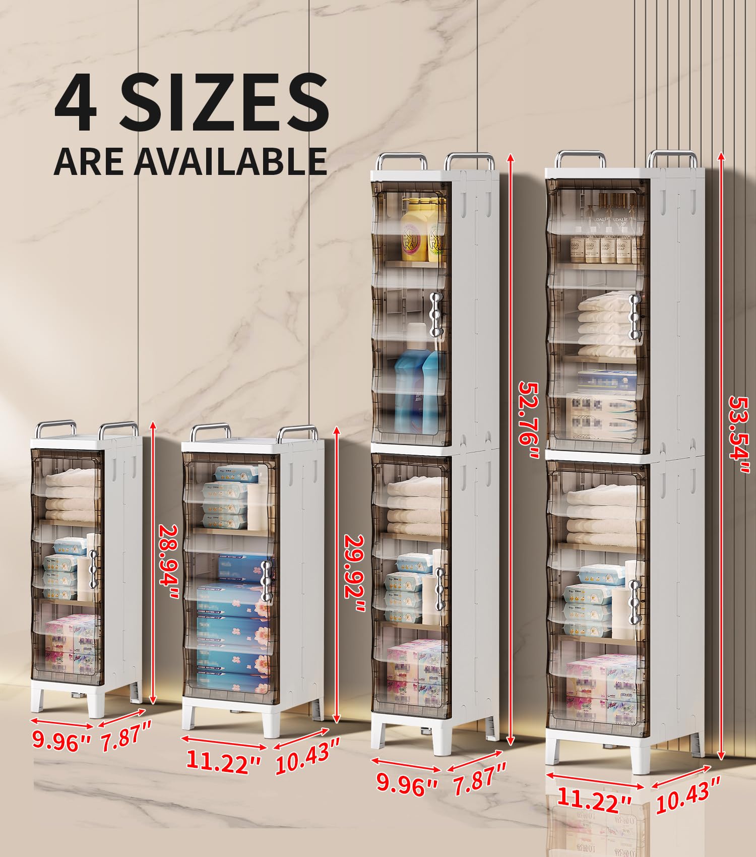 [Space-Saving Slim Design] Measuring just 26.38" L x 8.27" W x 5.51" H, this ultra-narrow cabinet maximizes storage in tight spaces like behind toilets or in small apartments while organizing bathroom essentials, cleaning supplies, and more.