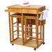 Includes two matching square bar stools that conveniently store under the cart when not in use, ideal for quick meals or extra seating.