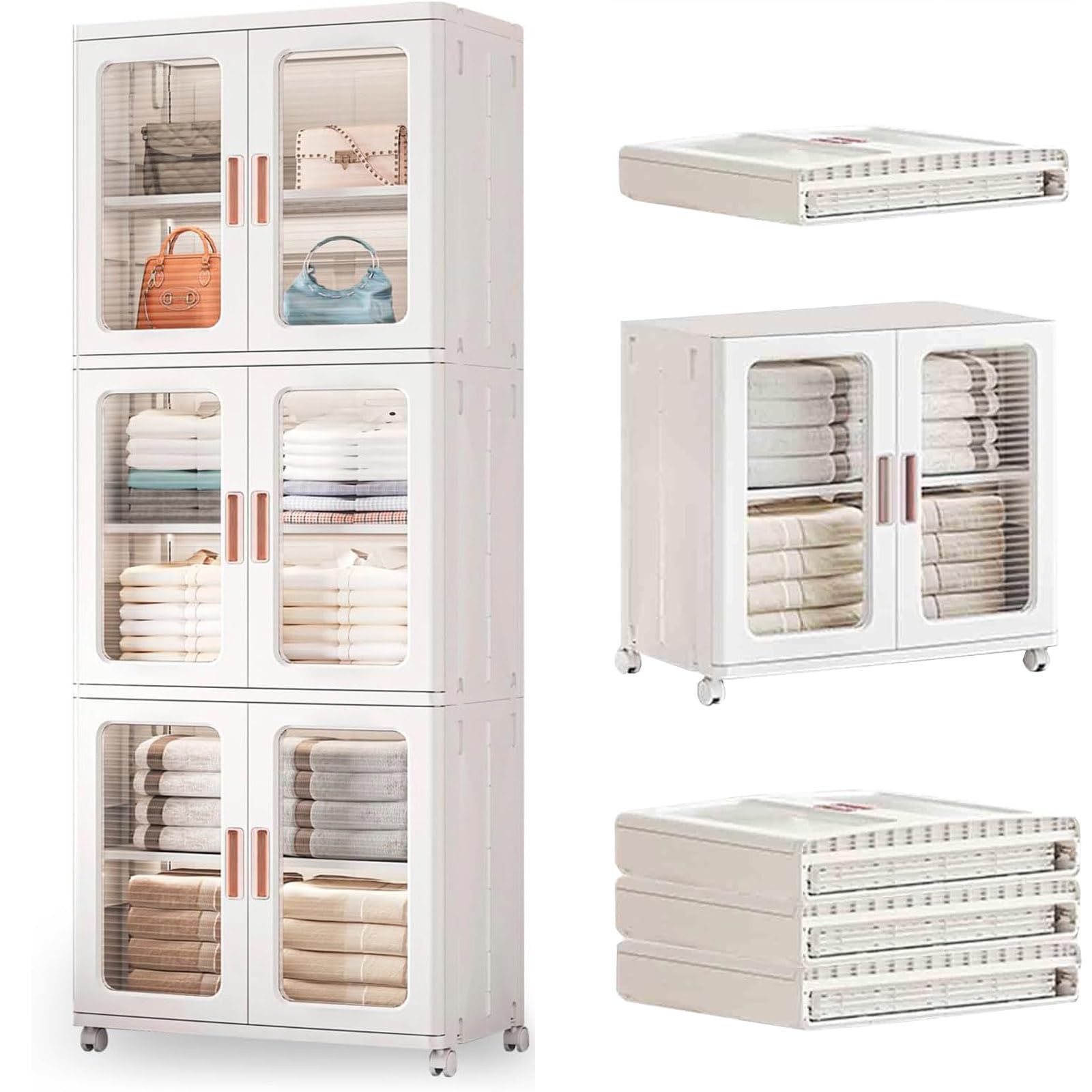 This foldable and stackable storage cabinet is perfect for organizing clothes, books, snacks, and household essentials while saving floor space.