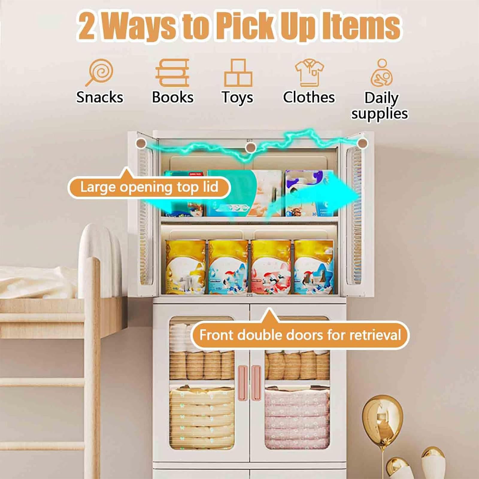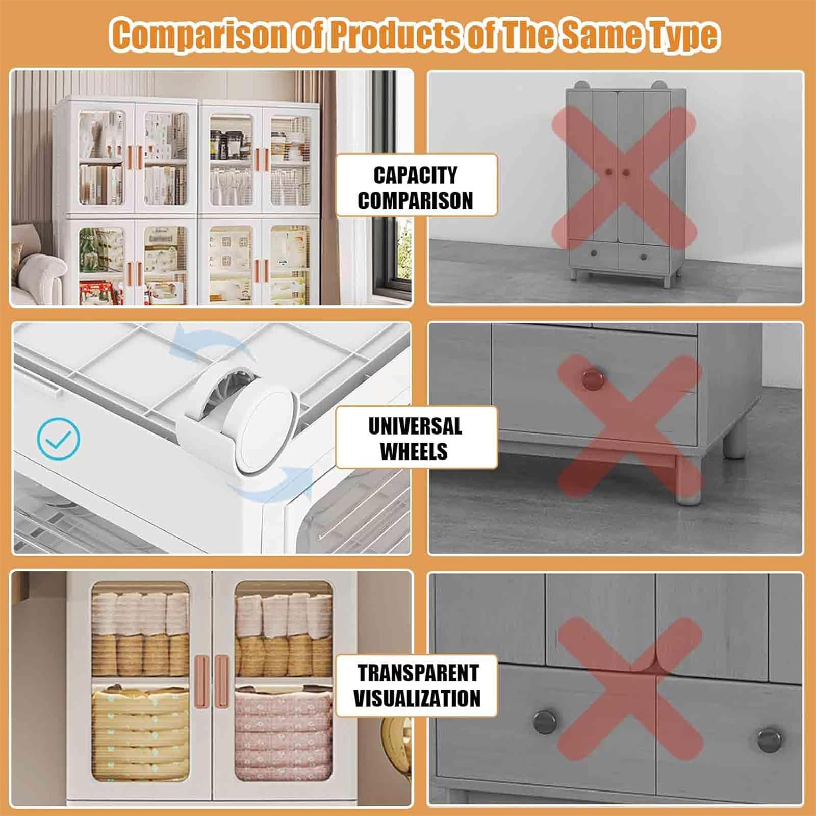 [Large Capacity with Adjustable Shelves] Generous storage space with customizable shelves on each tier to fit items of various sizes; magnetic front door prevents accidental opening during movement.