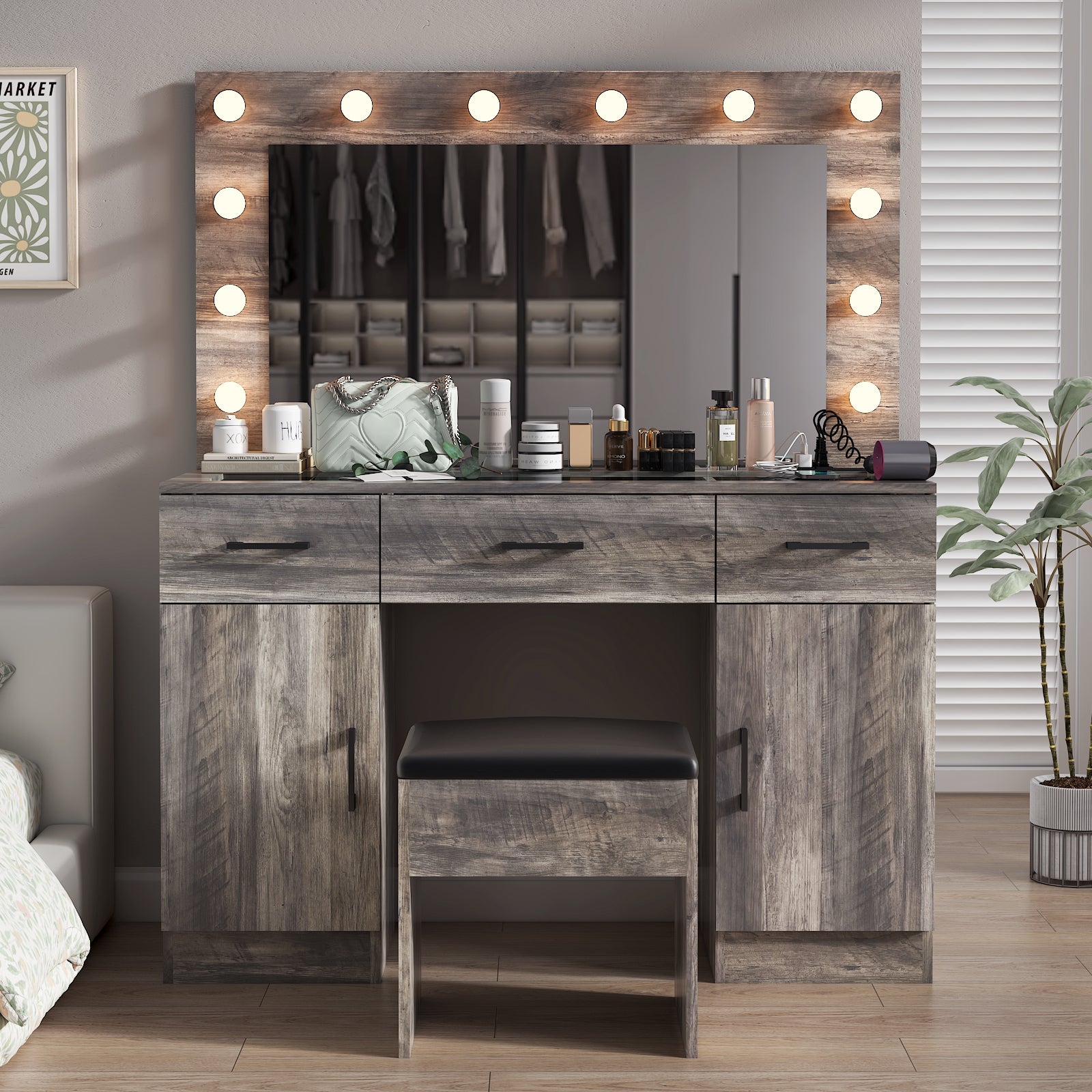With three large drawers and two roomy cabinets, this vanity provides plenty of space to store makeup, jewelry, hairstyling tools, and other personal items, ensuring everything is neat and within easy reach.
