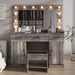 The plush cushioned stool adds a comfortable seating option while saving space by tucking neatly under the desk. This vanity set is the perfect combination of functionality and modern style, transforming your bedroom or dressing area into a chic and convenient space.