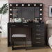 This chic vanity set features a modern aesthetic with a plush cushioned stool that can tuck neatly under the table when not in use. Its elegant design makes it a thoughtful and stylish addition to any bedroom or dressing area.