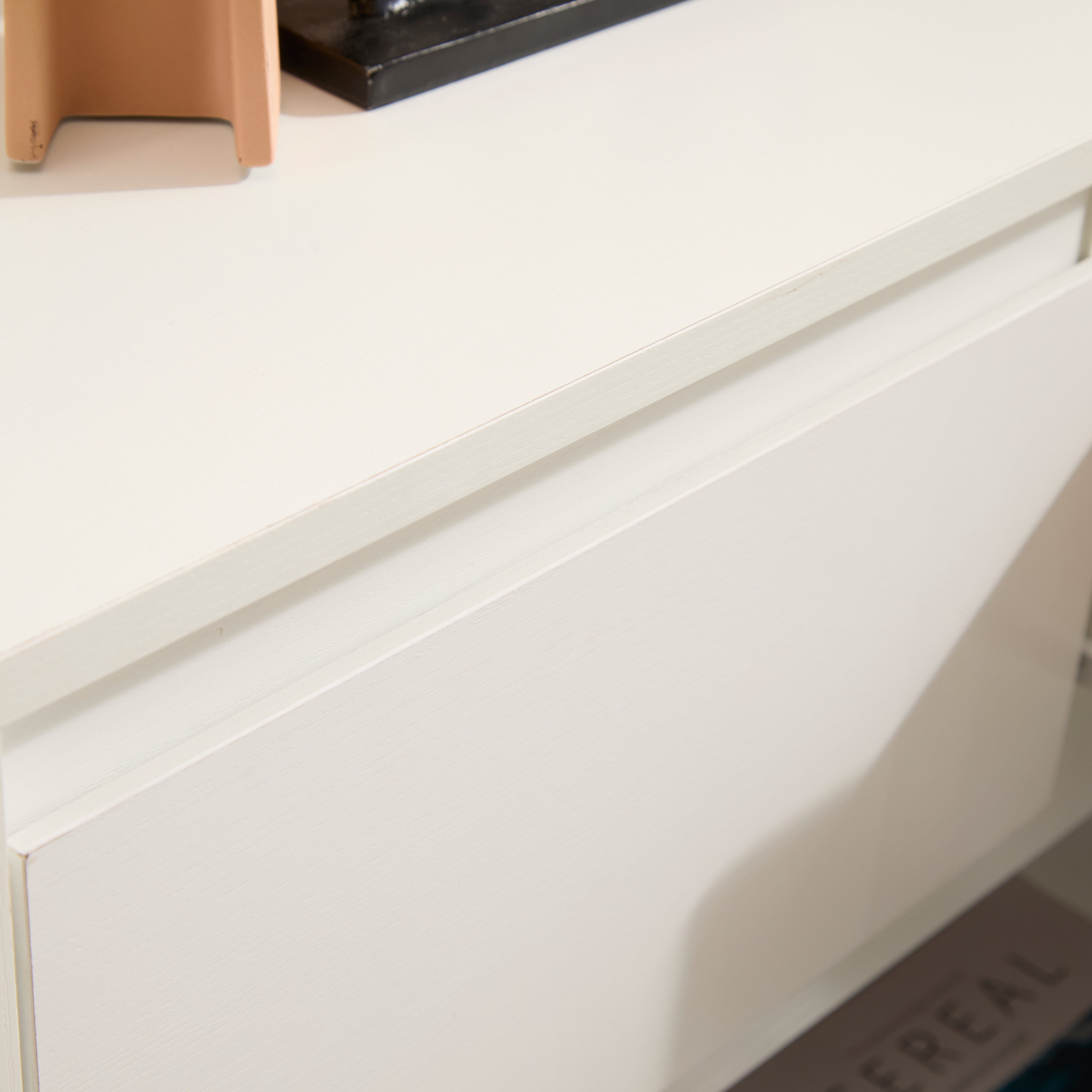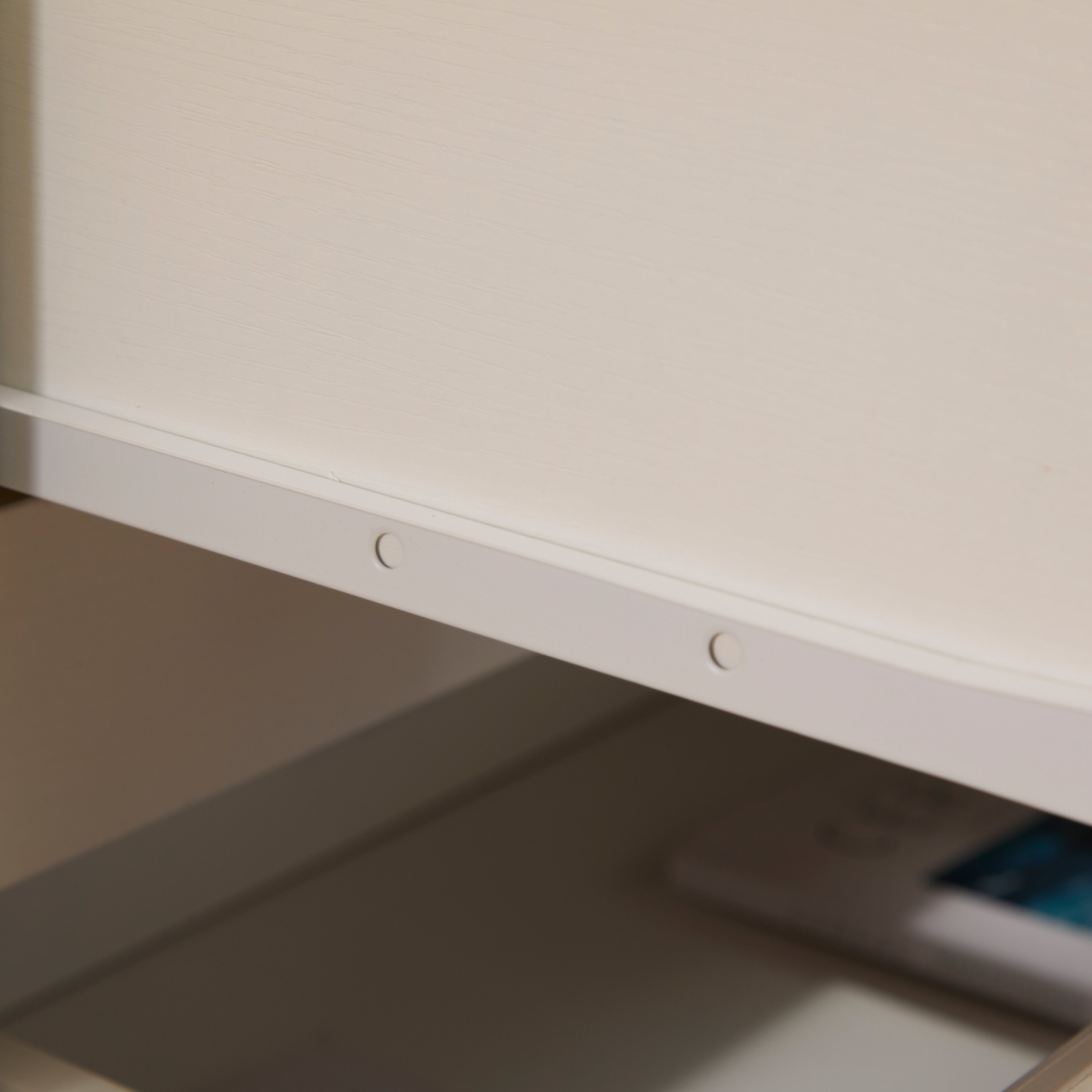 Minimalist white finish and clean lines blend seamlessly with contemporary interiors, enhancing the style of bedrooms, offices, or studios.