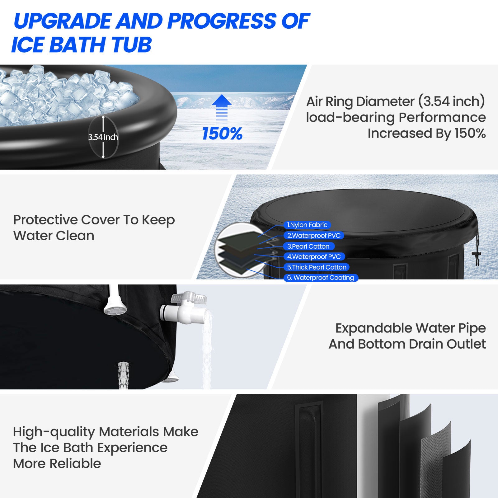 [Durable and User-Friendly Construction] Built with sturdy, long-lasting materials, the tub is designed for stability and comfort. Quick setup ensures you can start your cold plunge session without hassle.